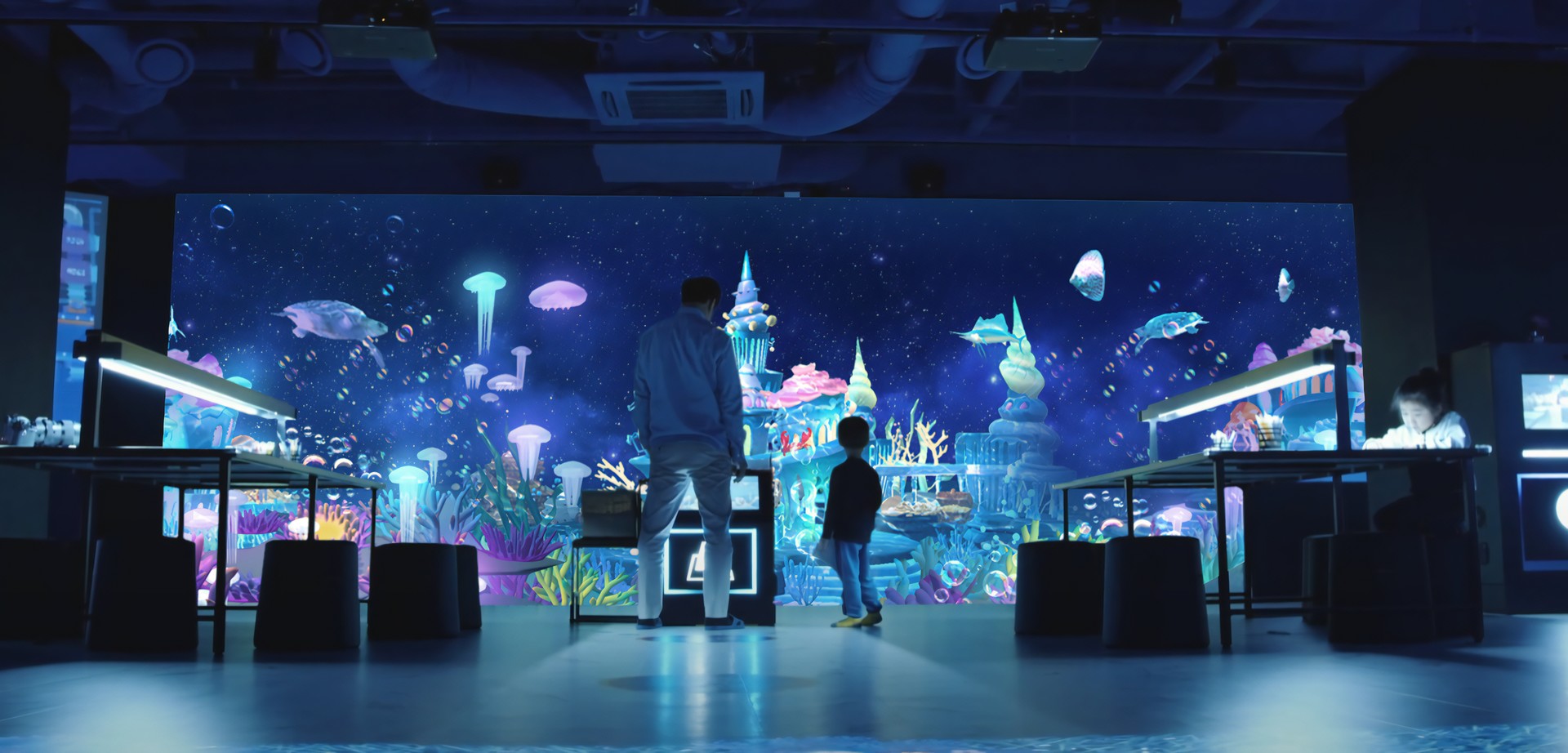 사용자가 직접 화면을 터치하며 화면을 움직이는 체험형 전시로