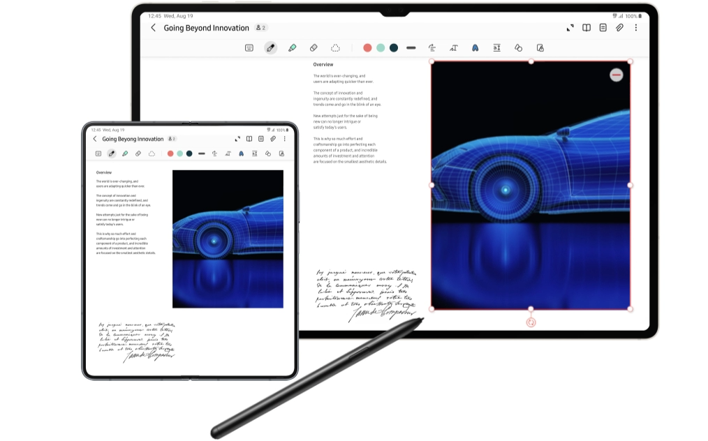 갤럭시 기기끼리 노트를 공유하며 앱에서 실시간으로 콘텐츠를 편집할 수도 있죠.